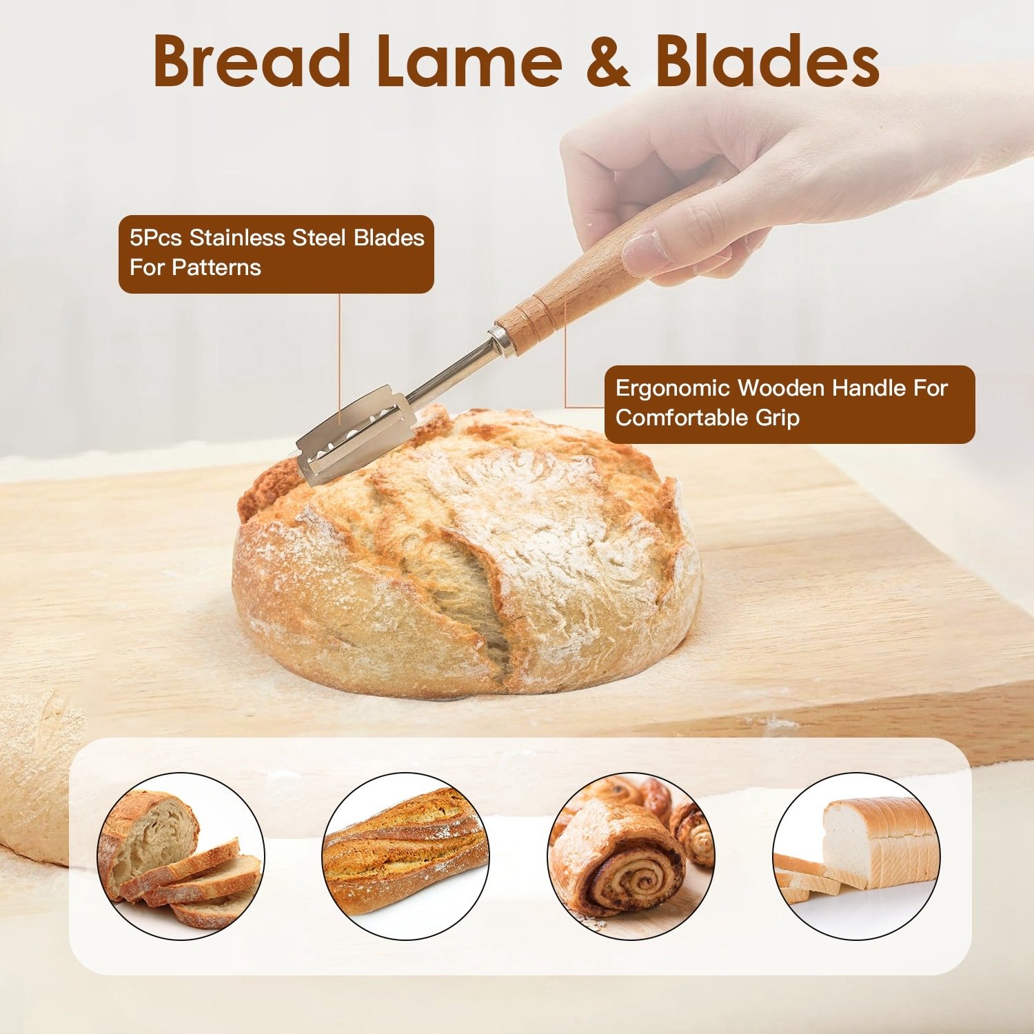 *Natural Rattan & Wood*:The banneton baskets are made of natural,odorless and non-toxic rattan,with mold-resistant linen cloth,creating an ideal proofing and rising environment for yummy breads. Moreover,the sturdy,durable wooden handle of Danish whisk and bread lame deliver smooth and ergonomic grip experience.