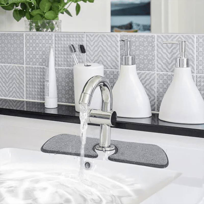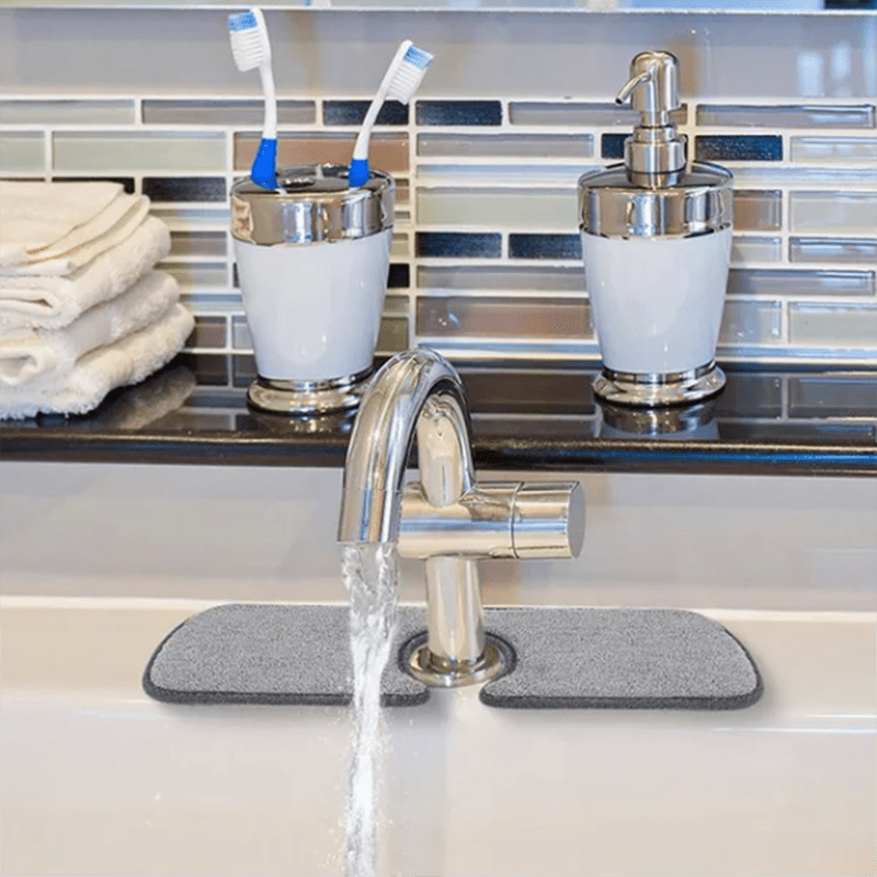 5.Super Absorbent & Quick Drying faucet protector backsplash guard. A specially engineered wicking mesh layered with absorbent microfiber cloth for the best quality sink mat faucet splash guard.